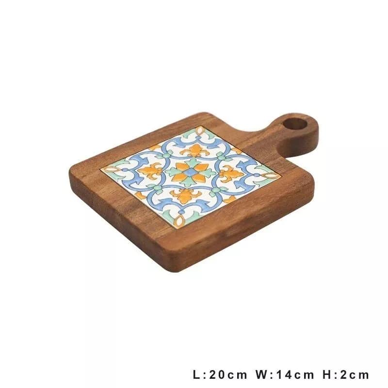 Introducing our Acacia Wood and Colorful Tile Trivet, a perfect amalgamation of practicality and style for your kitchen and dining needs. Crafted from premium Philippine Acacia wood, this trivet boasts a thick, clear wood grain, ensuring durability and resistance to cracking. The addition of retro-inspired tiles not only adds an element of elegance but also enhances the thermal insulation, making it superior to other materials. Whether you’re placing a hot tea pot or a sizzling pan, this trivet ensures your surfaces remain unscathed.