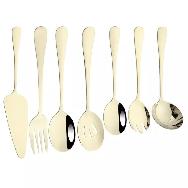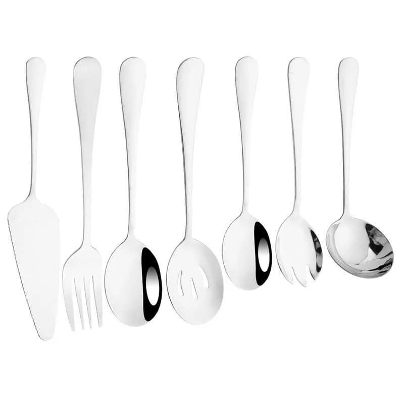 - Multi-purpose Use: Includes soup spoon, colander spoon, service spoon, salad fork, and cake spatula for diverse dining needs.