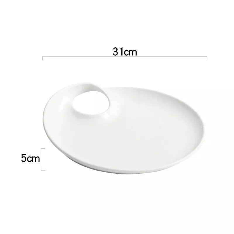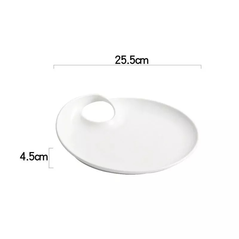 Enhance your dining experience with our Elegant White Ceramic Round Plate, a perfect blend of modern art and classic style. This plate is not just a dish; it’s a statement of sophistication. Whether it’s a steak dinner at a western restaurant, a dessert at a wedding, or simply a family meal, this plate elevates every occasion.