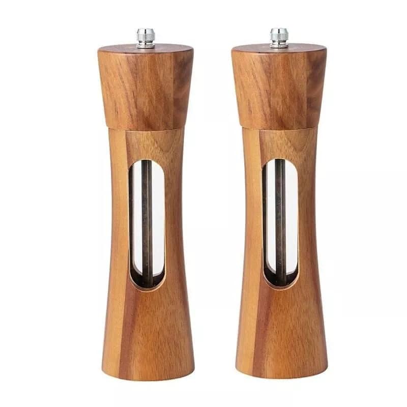 Introducing our Elegant Wooden Salt and Pepper Grinder – a must-have for every kitchen. Crafted for convenience and style, this grinder is not just a tool, but a centerpiece on your dining table. Its sleek wooden design and transparent acrylic window blend classic charm with modern functionality, making it perfect for any home decor.