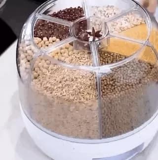 Introducing the ultimate kitchen organizer – our Modern 6-Grid Rotating Grain Dispenser. Designed for modern households, this sleek and efficient grain storage solution is perfect for those who value both aesthetics and functionality. Its unique rotating design not only adds a touch of elegance to your kitchen but also makes accessing your grains a breeze.