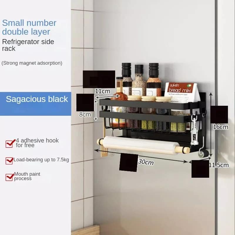 Introducing our innovative Multi-Tier Magnetic Kitchen Shelf, the ultimate solution for maximizing kitchen space and organizing essentials with ease. Crafted from durable metal with a sleek matte black finish, this shelf is not just a storage unit but a stylish addition to any kitchen. Its powerful magnetic design allows for effortless installation without the need for drilling or screws, making it a perfect fit for various metal surfaces in your home.