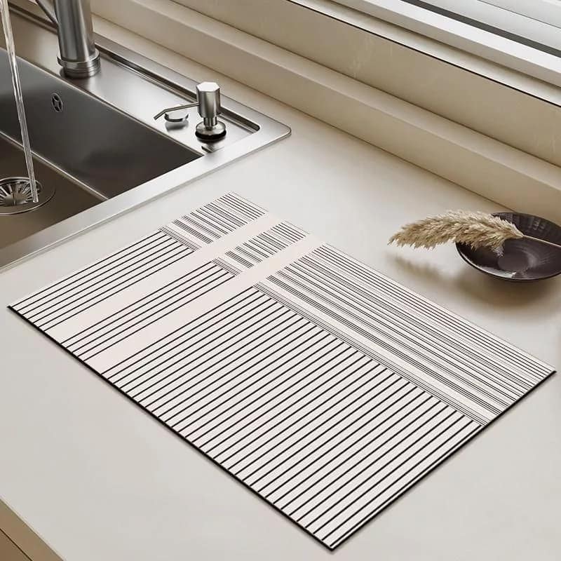 Introducing our Versatile Absorbent Diatomite Kitchen Mat, a perfect blend of functionality and style for your kitchen space. Designed with modern households in mind, this mat is not just a kitchen accessory but a revolution in maintaining cleanliness and organization in your home. With its sleek striped pattern and contemporary design, it seamlessly integrates with any kitchen decor, making it an ideal choice for today’s stylish homes.